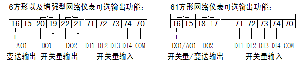 ◇ 6方形、61方形以及增強型網絡儀表可選輸出功能(特殊選配組合需定制)