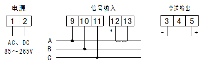 測(cè)量電網(wǎng)中的三相負(fù)載平衡的功率因數(shù)/功率因數(shù)角度,隔離輸出標(biāo)準(zhǔn)的電流信號(hào)。